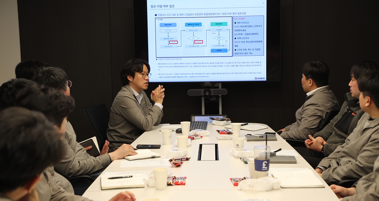 현장 설비 및 전기관리자를 대상으로 한 기전팀 워크샵에서는 내화채움구조와 적용 기준에 관한 교육이 진행됐다. 이외에도 본사 팀장의 강연을 통해 다양한 실무 지식을 전달했고, 임원소통회의를 통해 현장 간, 그리고 본사와 현장 간 의견을 나누는 시간도 마련됐다.