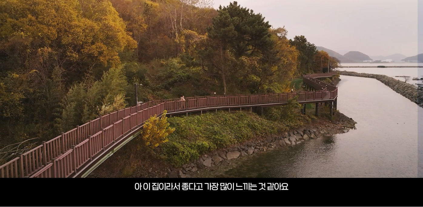 노을이 지는 시간, 창 밖으로 펼쳐지는 풍경을 바라보는 시간은 하루를 차분히 정리할 수 있도록 돕는다. 붉게 물든 하늘과 산의 실루엣은 도시 속에서도 자연과 함께 살고 있음을 실감하게 한다. 송이는 창 밖 풍경을 바라보고, 지인씨는 그 옆에서 행복했던 하루를 돌아본다.