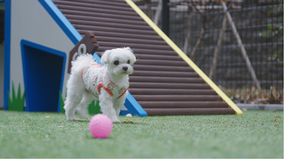 차를 타고 멀리 나가지 않아도, 이곳에서는 다양한 놀이기구를 활용한 활동이 가능하다. 반려견들은 뛰고, 오르고, 멈추고, 다시 달리며 신나는 시간을 보낸다. 지인씨는 그 모습을 지켜보며 잠시 여유를 누린다.