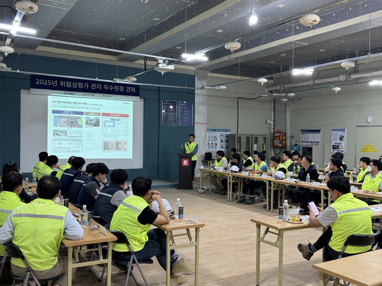 이러한 성과를 현장에서 직접 체험할 수 있는 자리가 다음 날 마련되었다. 9월 25일, 반도건설은 본사 안전보건팀을 비롯해 전국 8개 주요 현장의 공사팀장 및 안전팀장 등 관련 담당자 16명을 초청하여 ‘위험성평가 우수현장 견학’을 진행하였다.