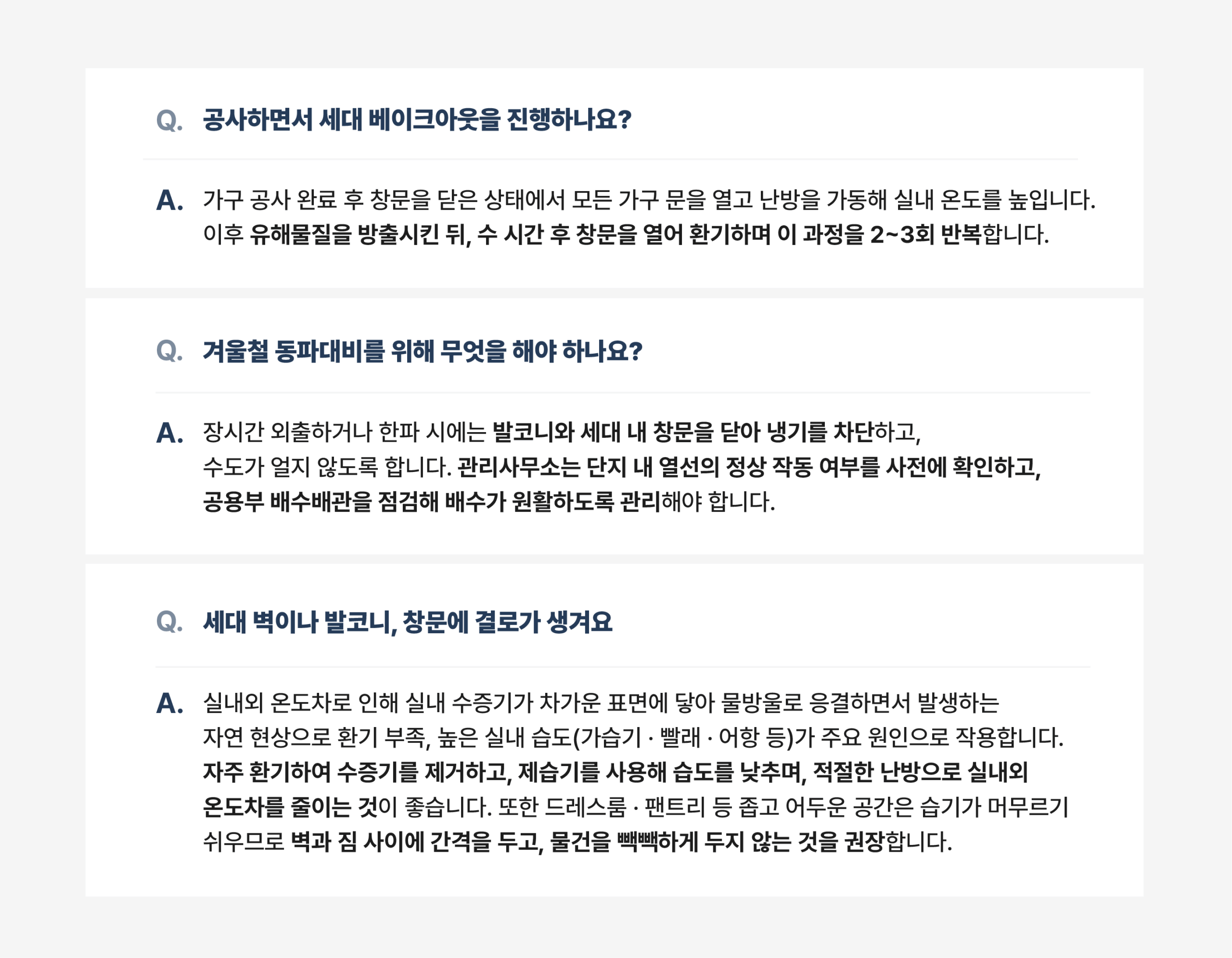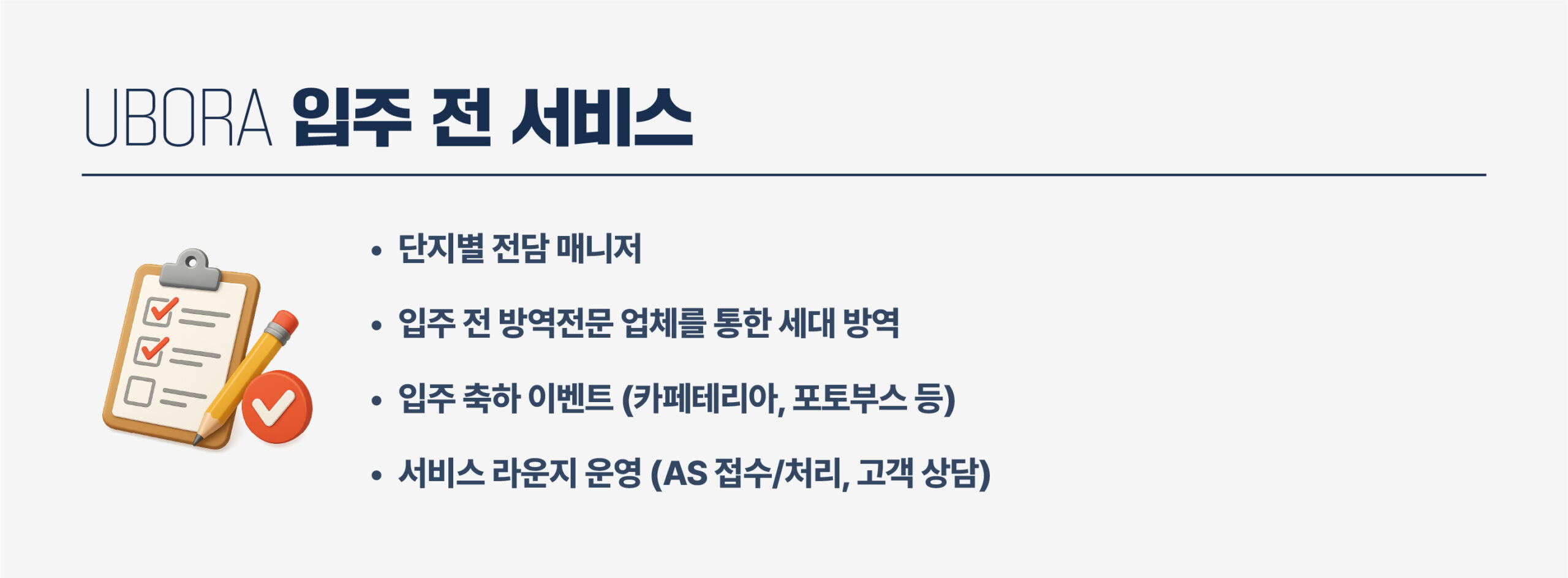 이외에도 서비스 라운지에서는 입주 초기 발생하는 A/S 접수, 상담, 보수 처리 등 실질적인 지원이 신속하게 이루어지며, 입주민의 불편을 최소화하고 고객 경험을 향상시킨다. 이러한 사전 관리 경험은 단지에 대한 신뢰로 이어지고, 이후 하자보수 및 연차합의의 참여도에도 긍정적인 영향을 미친다.