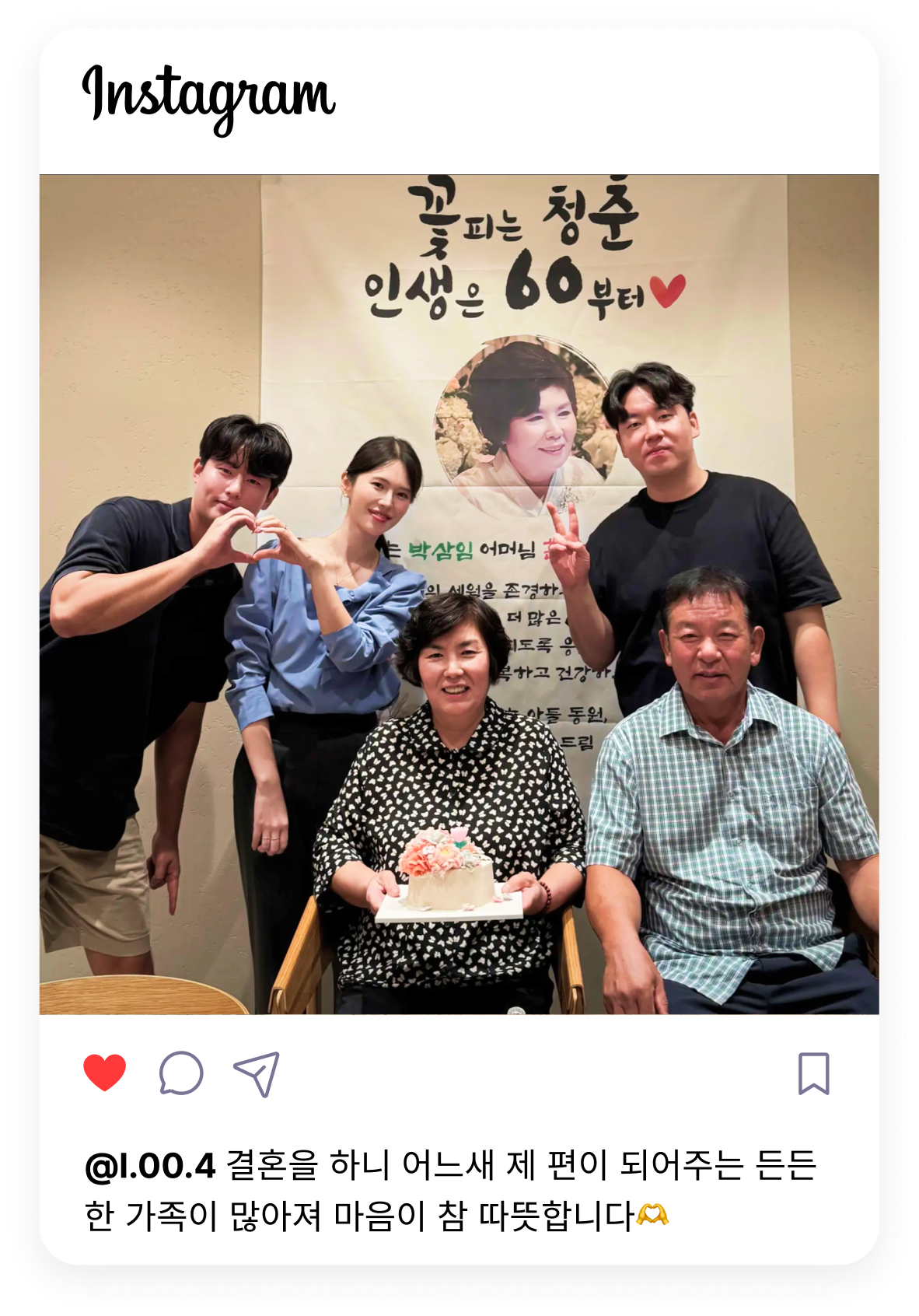 1등 수상자인 @ l.00.4님은 결혼 후 첫 명절을 맞은 어머니의 환갑을 함께 준비하며 비로소 진짜 가족이 되어가는 순간을 경험했다고 전했다. 그의 따뜻한 마음처럼, 사진 속 가족의 미소에도 사랑이 가득 담겨 있다.