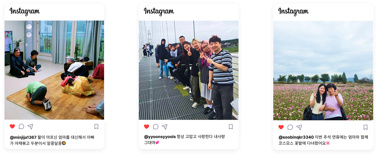 함께 웃고, 함께 기억한 추석의 순간들이 내일의 추억이 되어 오래도록 반짝이길 바란다.