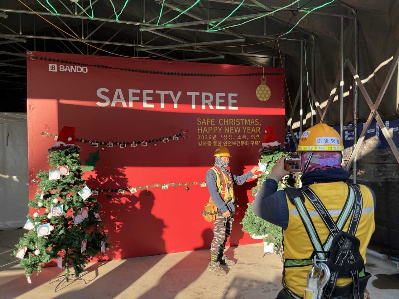 현장을 밝힌 세이프티 트리의 작은 불빛과 트리에 달린 메시지들은 한 해를 무사히 마무리하고 다가오는 새해에도 안전을 이어가고자 하는 현장 구성원들의 마음에 남아 더욱 안전한 반도건설의 2026년을 만들어가는 작은 밑거름이 될 것이다.