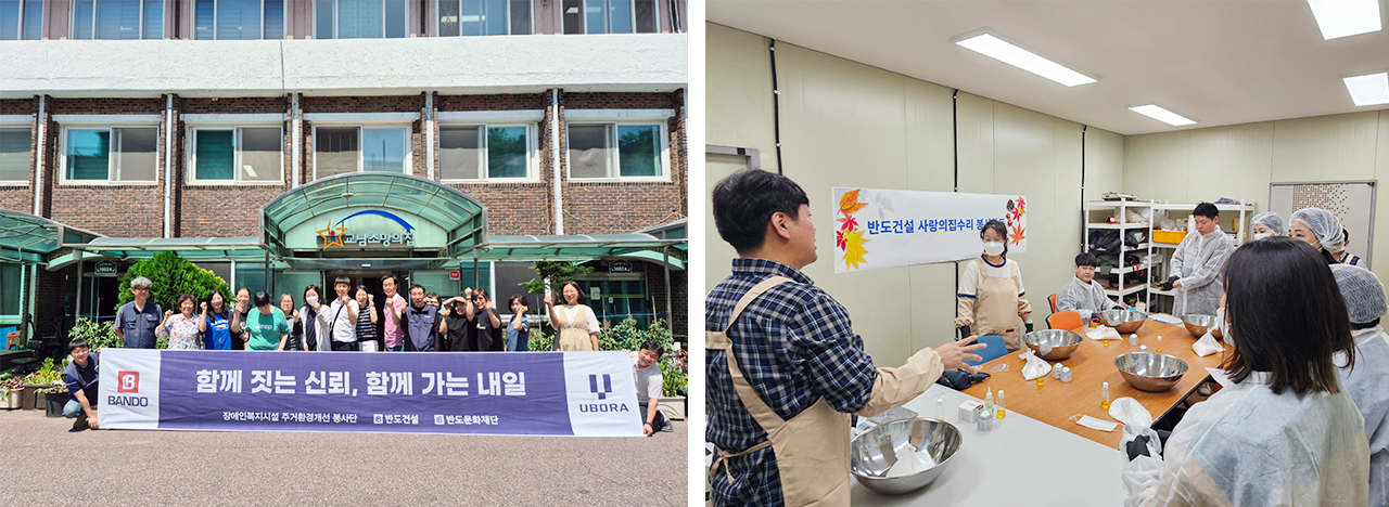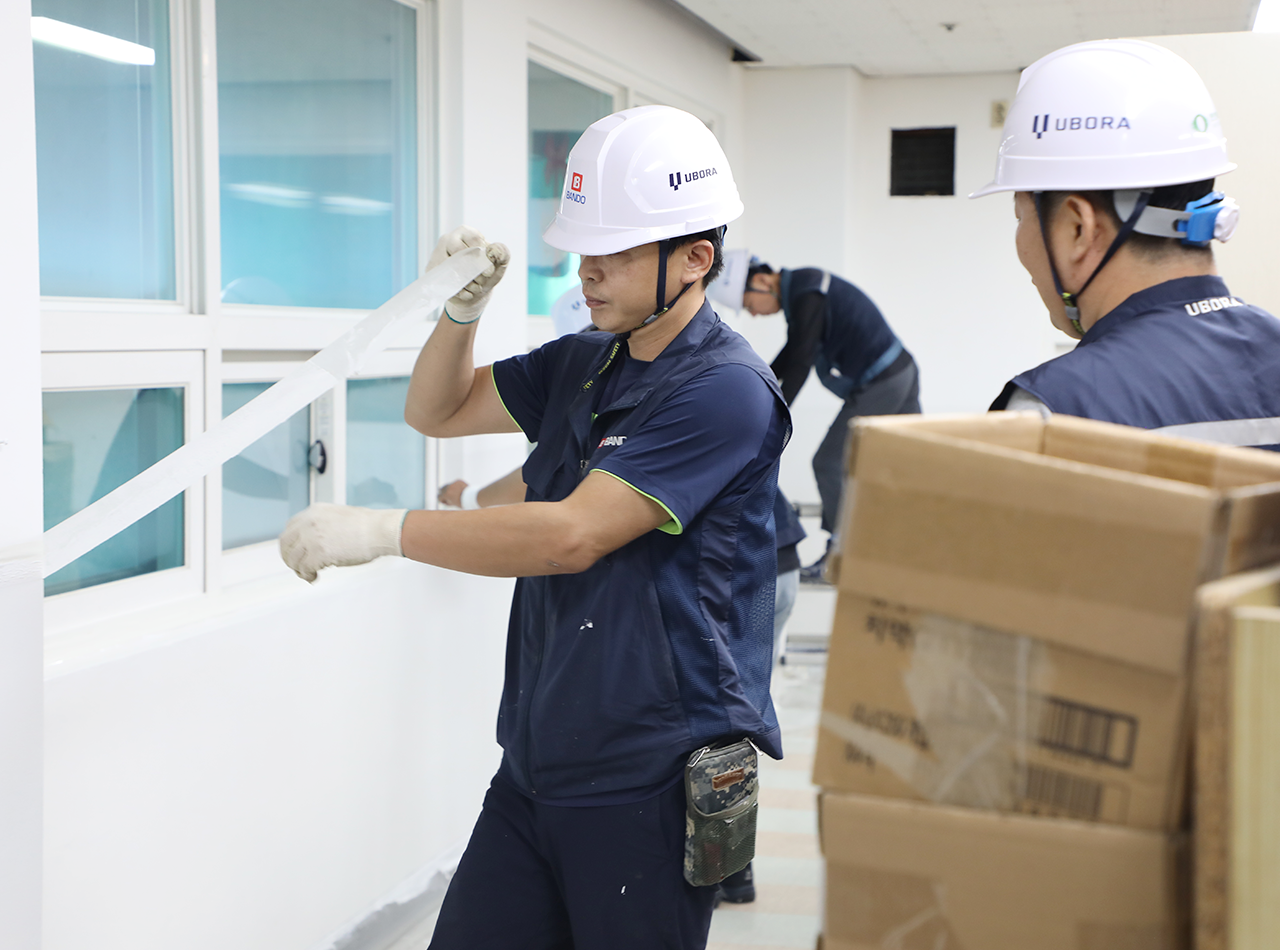 반도건설은 현장을 직접 방문해 기관의 이야기를 듣고, 노후화로 인해 위험 요소가 된 공간을 점검하며 기능을 다하지 못하던 마감재를 교체했다. 보다 쾌적한 환경에서 직접 재활 교육과 근로 활동이 이뤄질 수 있도록 임직원들이 직접 현장에 참여해 재능기부를 실천했다.