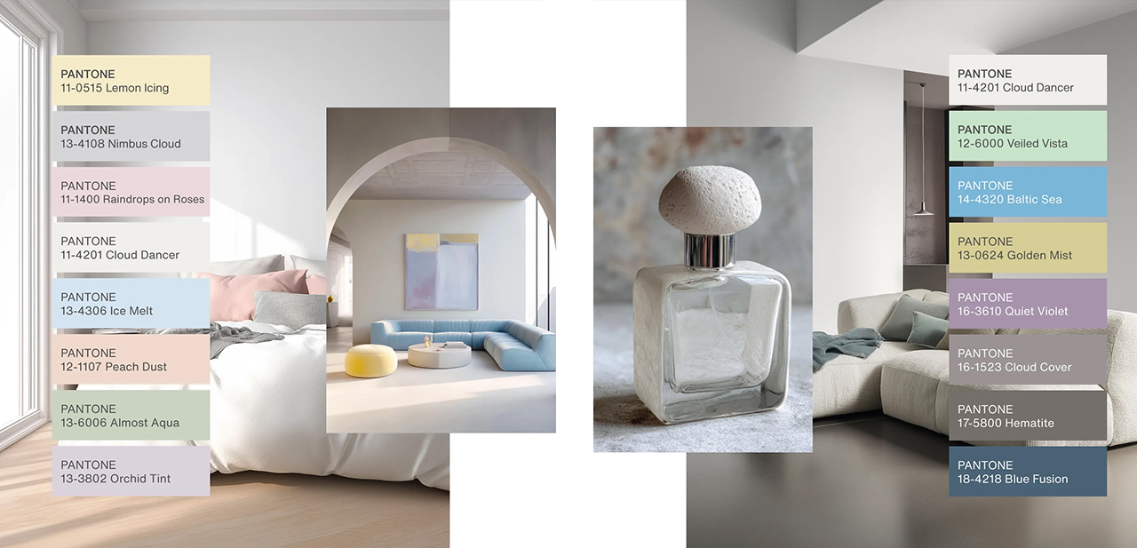 2026년 컬러 트렌드는 부드러운 웜 뉴트럴과 깊이 있는 딥 어시 톤이라는 두 축으로 뚜렷하게 나뉜다. 색채 전문 기업 Pantone이 제시한 ‘클라우드 댄서’와 글로벌 트렌드 예측 기관 WGSN의 ‘트랜스포머티브 틸’은 이 대비를 상징적으로 보여준다. 이는 개성 있는 공간을 원하는 욕구와 심리적 안정을 바라는, 서로 다른 가치가 공존한 결과다.