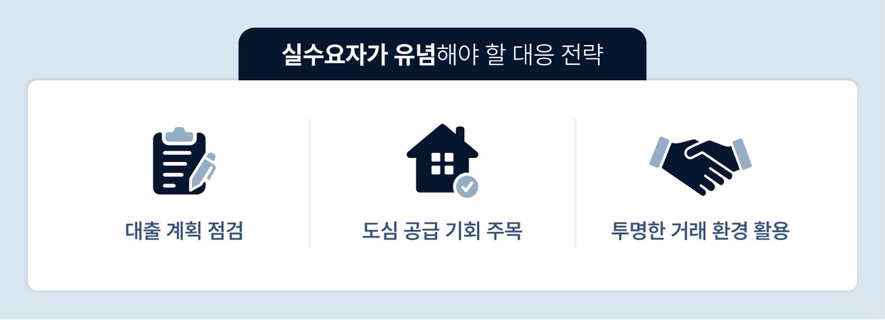 이번 정책이 공급 확대, 수요 억제, 제도 정비를 포괄하는 만큼 실수요자의 대응 전략 역시 중요해졌다. 우선 강화된 대출 규제에 따라 자신의 소득, 주택담보대출비율(LTV) 조건을 점검하고, 변화된 전세대출 한도에 맞춰 자금 계획을 재조정할 필요가 있다.