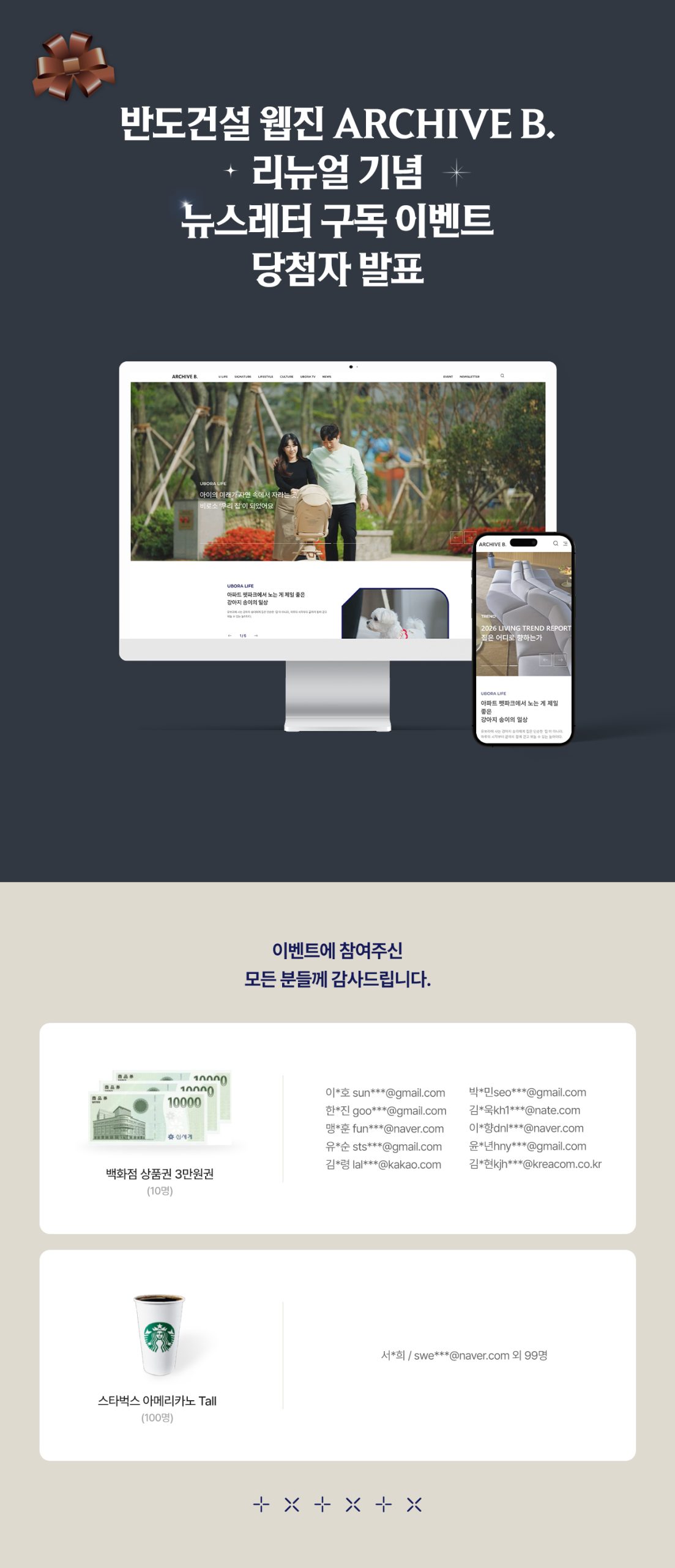 ARCHIVE B. 뉴스레터 구독 이벤트에 참여해 주신 모든 분들께 진심으로 감사드립니다.