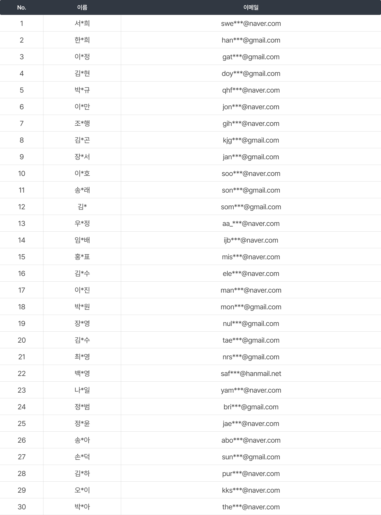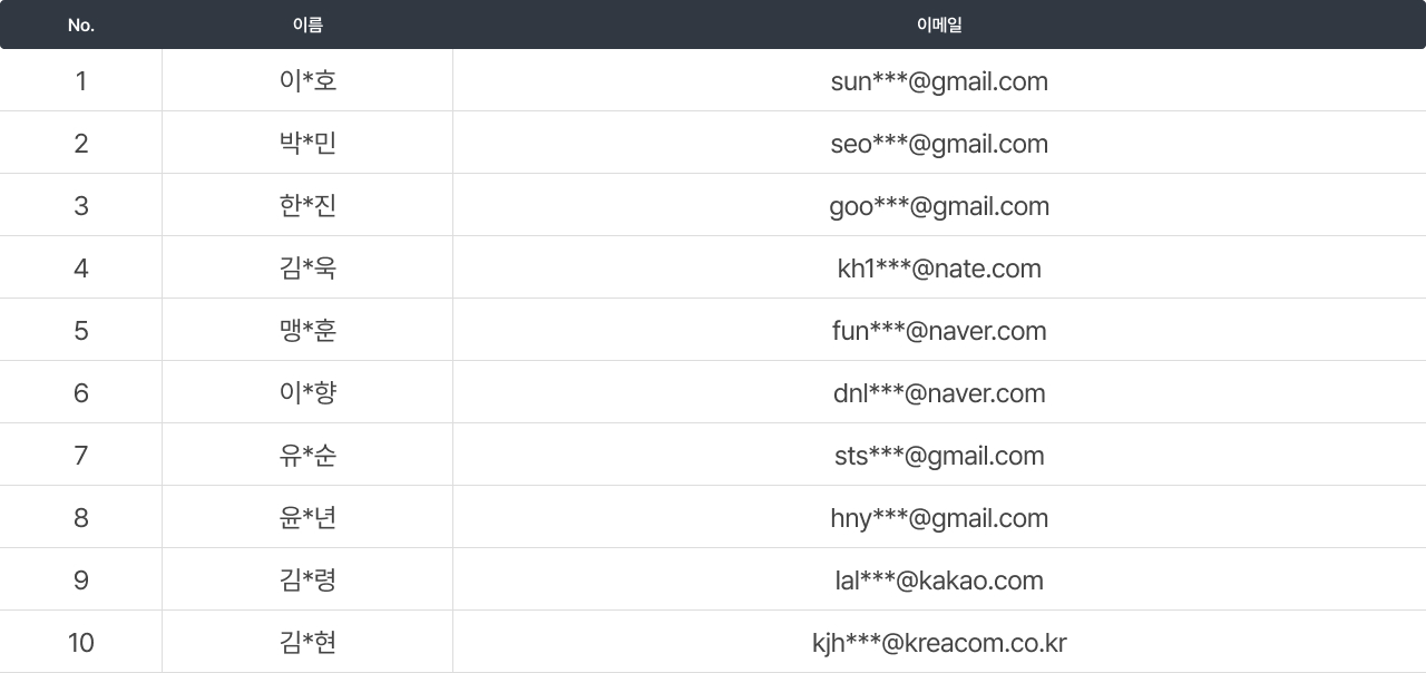 이번 이벤트에는 많은 분들이 함께해 주셨습니다. 추첨을 통해 선정된 당첨자 명단을 아래와 같이 안내드립니다.