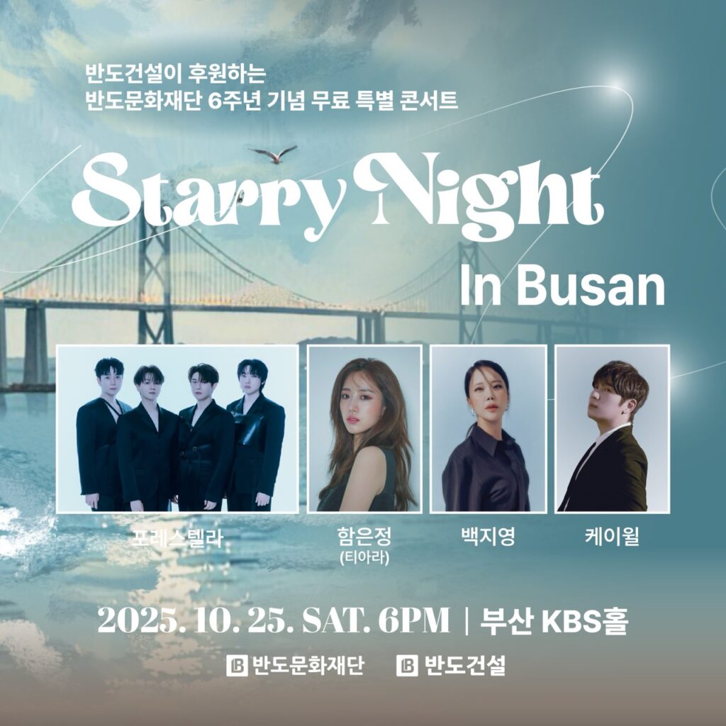 가을의 부산 바다 위에 별빛 같은 선율이 내려앉는다. 반도건설이 설립한 비영리 공익법인 반도문화재단 설립 6주년 특별 콘서트 「Starry Night in Busan」이 오는 10월 25일(토) 오후 6시, 부산 KBS홀에서 개최된다. 반도문화재단과 반도건설은 2023년 동탄 콘서트를 시작으로, 지난해 서울에서 열린 설립 5주년 기념 콘서트까지 지역과 세대를 아우르는 문화의 장을 꾸준히 마련해왔다. 올해 6주년 기념 공연은 반도건설의 […]